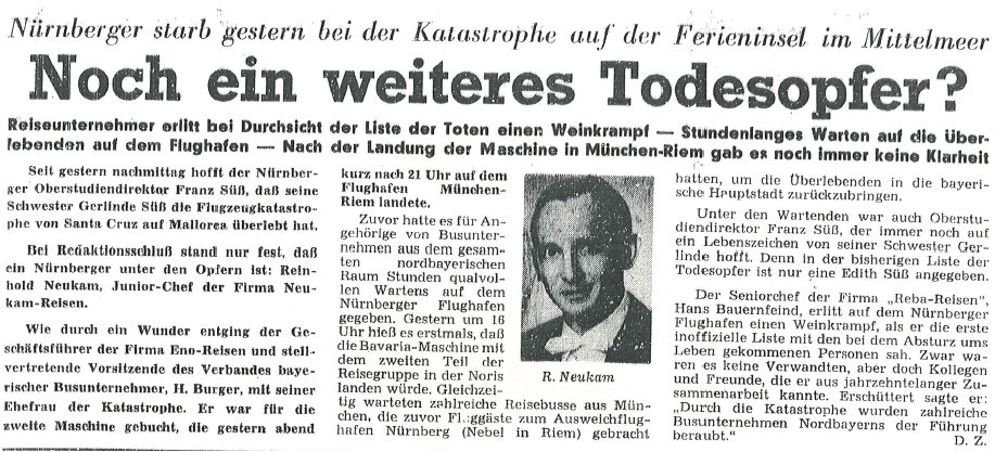 Reinhold Neukam verunglückt bei einer Flugreise des Landesverbandes Bayerischer Omnibusunternehmer am 03.12.72 tödlich.